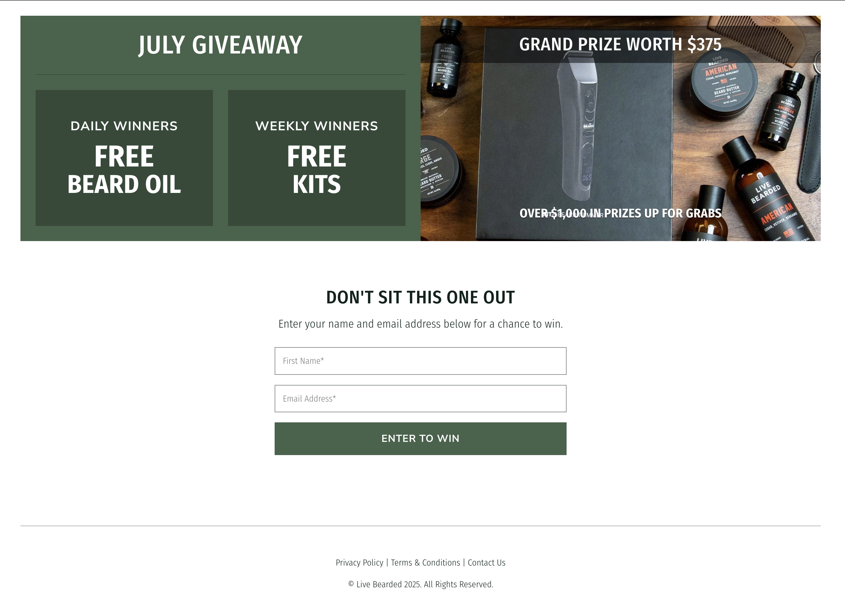We run these giveaways every month as a way to give back to the Brotherhood. There are daily, weekly, and monthly prizes, including beard oil, complete kits, and even grand prizes worth hundreds of dollars.